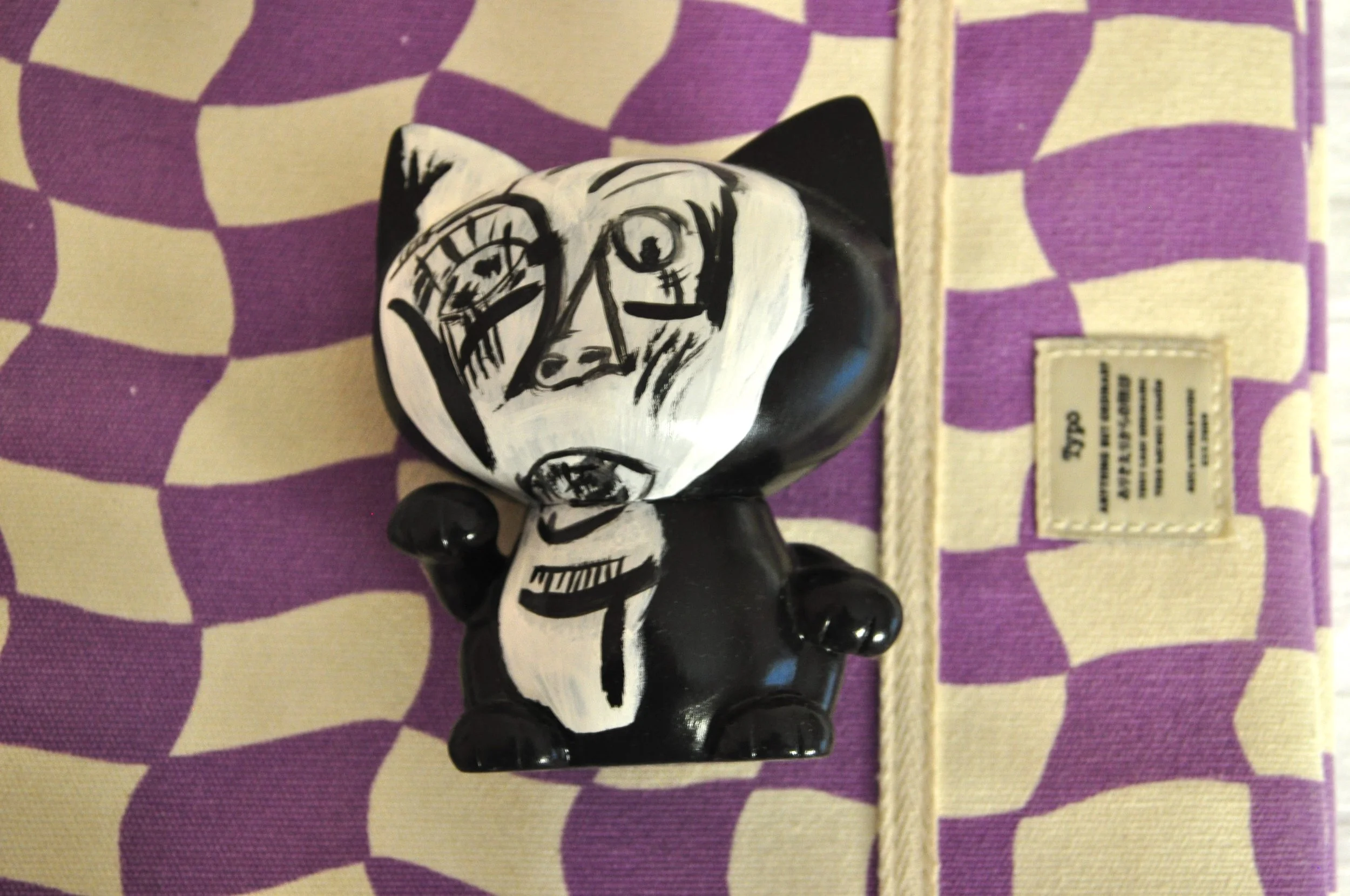 is a painted over figure which was gifted to me in a completely different exterior the idea of the painted shape is inspired by jean michel basquiat over all style of painting